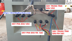 – Máy biến áp 3 pha có đầu vào 380v đầu ra 200-220v.