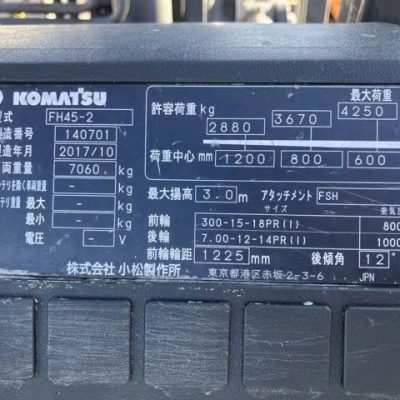 ẢNH XE NÂNG KOMATSU 4.5 TẤN FH45-1 TẠI SÀN ĐẤU GIÁ NHẬT: