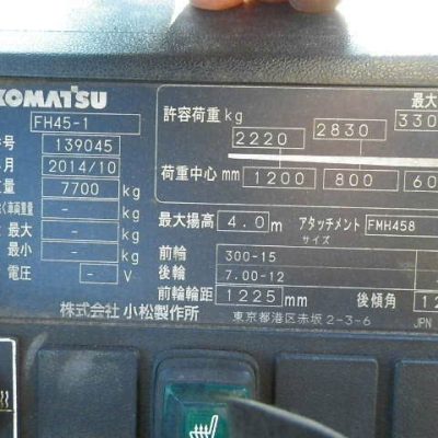 Thông số kỹ thuật của xe nâng dầu Komatsu 4.5 tấn FH45-1