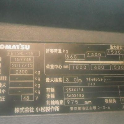 XE NÂNG KOMATSU CHẠY ĐIỆN 1.0 tấn, MODEL: FB10RL-15 Sản xuất: 2018, chạy 460 giờ