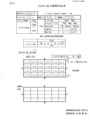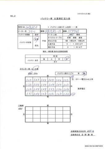 – Bình chạy liên tục được 3-4 h hoạt động/ Xe có bảng check sheet ắc quy do kỹ sư hãng Komatsu tại Nhật kiểm tra.