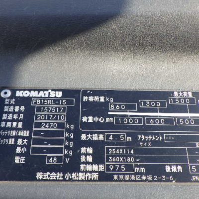 Xe nâng điện Komatsu 1.5 tấn 4.5m (3 tầng) – 2020