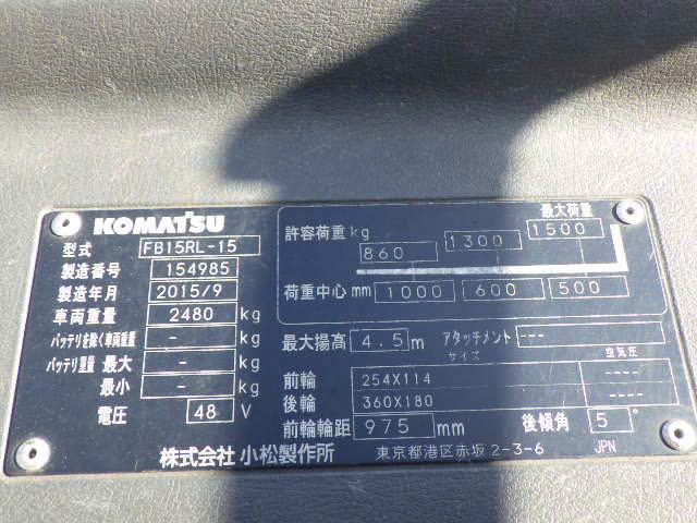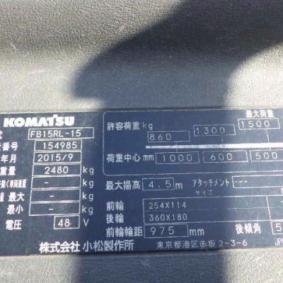 Xe nâng điện Komatsu 1.5 tấn đứng lái 2015