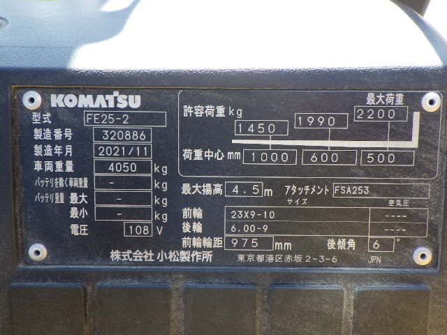 THÔNG SỐ KỸ THUẬT XE NÂNG ĐIỆN KOMATSU 2.5 T MODEL: FE25-2: