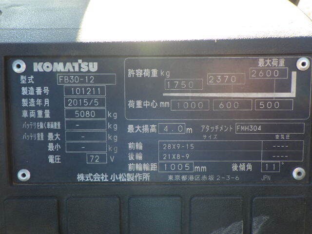 Thông số kỹ thuật cơ bản của Xe nâng điện Komatsu FE30-12