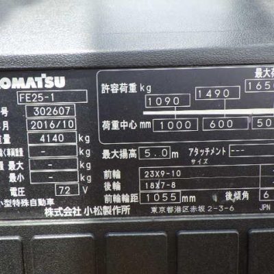 THÔNG SỐ KỸ THUẬT CHÍNH CỦA XE NÂNG ĐIỆN KOMATSU FE25-1 2016: