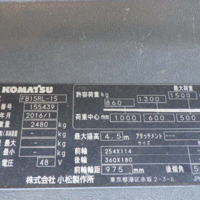 XE NÂNG ĐIỆN ĐỨNG LÁI CŨ 1,3T KOMATSU FB13RL-15 155439