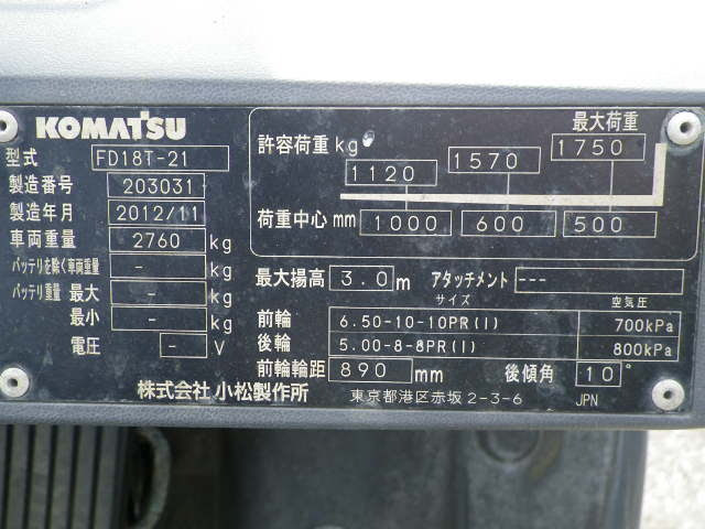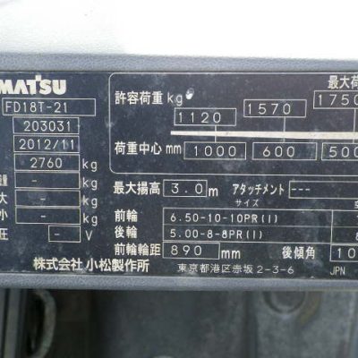 Xe nâng Komatsu 1.8 tấn, FD18T-21 , lốp hơi, số tự động- 203031