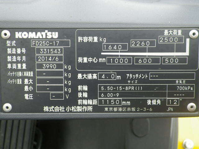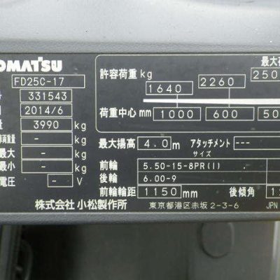 Xe nâng Komatsu 2.5 tấn chạy dầu năm 2014 # 331543