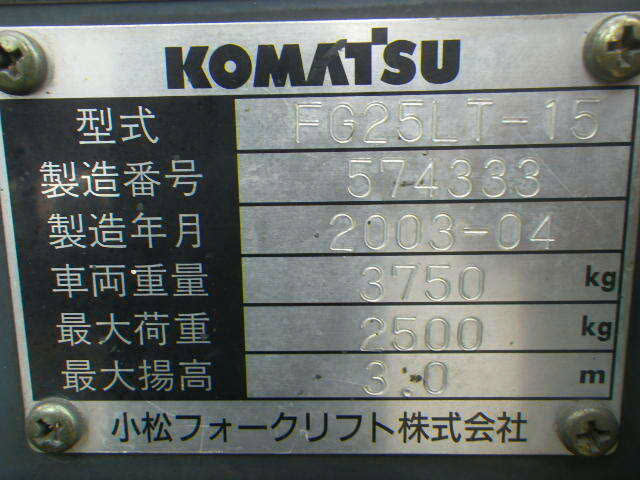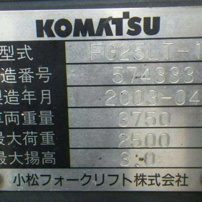 Thông số kỹ thuật xe nâng xăng Komatsu 2.5 tấn FG25LT-15: